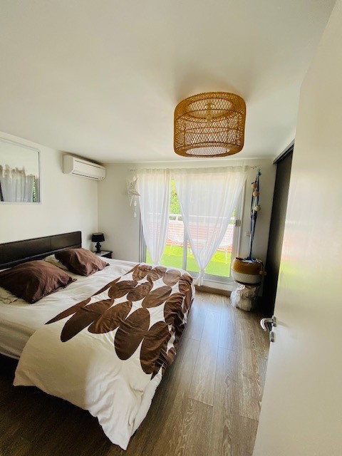 Une chambre parentale avec clim, placard, volet et terrasse privée