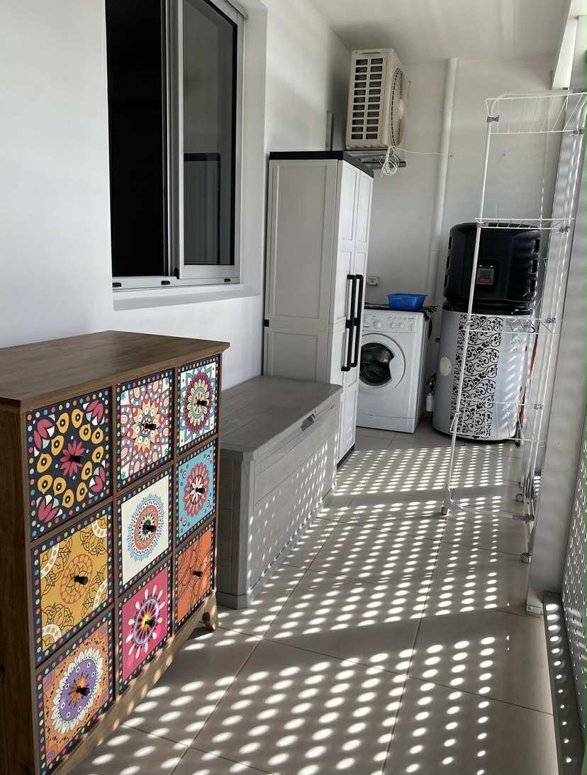 L’appartement comprend une cuisine toute équipée, un séjour donnant sur une terrasse de 26m² avec une vue mer magnifique. Une chambre avec placard, clim et volet. Une grande buanderie équipée. une salle d’eau et un WC indépendant.